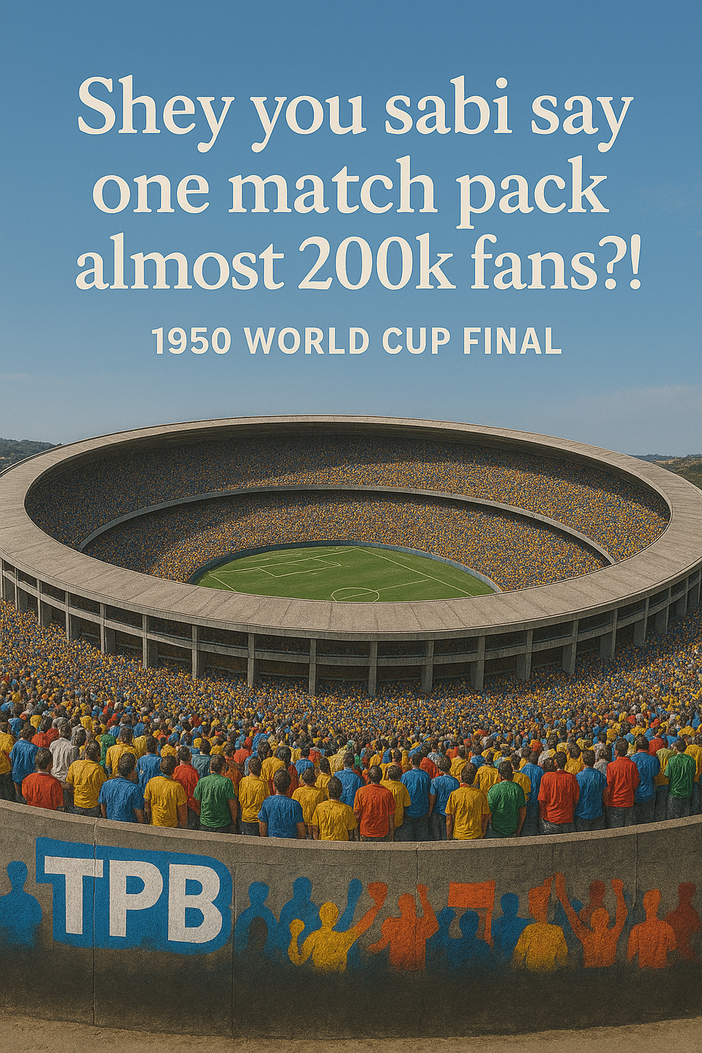 Football no be today. History book still dey point to one World Cup final wey break record for crowd size. Official figure show say 199,854 fans enter stadium to watch di deciding game of di 1950 FIFA World Cup. Up till today, na still di largest official attendance for any football match.