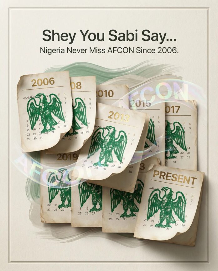 So next time anybody dey talk about African football, remember this fact: Nigeria never miss AFCON since 2006.